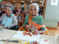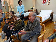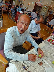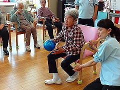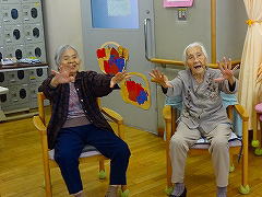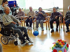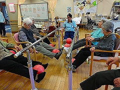 ボールやゴムバンドなどを使って、リハビリ体操をしています。 ちょっと頑張らなければいけない筋トレも、みなさんと一緒にがんばっています。 いつまでも日常生活に必要な筋力を維持していきたいですね。 ![]() |