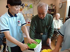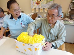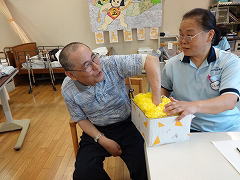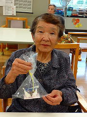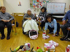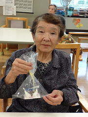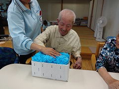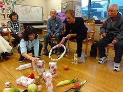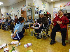 昔からあるゲームの一つ、「箱の中身は何だろな」 手を入れるのにちょっとドキドキ、みんなでわいわい盛り上がりました ![]() |