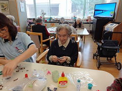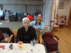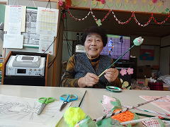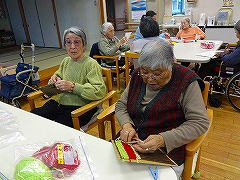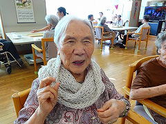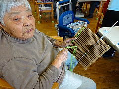作業療法で布ぞうりを作ったり、指編みでマフラーを作ったりしました どれも力作で 素敵!作業中はものすごい集中力なんですよ! ![]() |