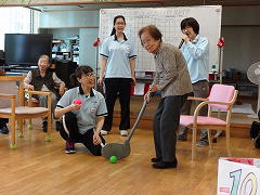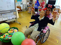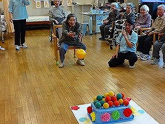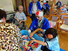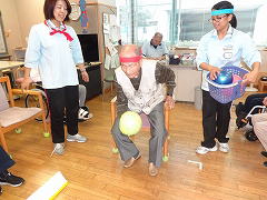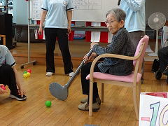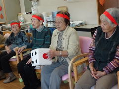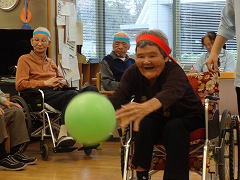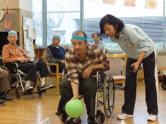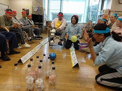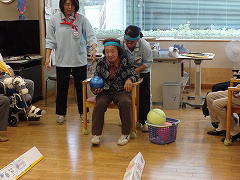 | ふれあい秋の楽しい運動会!ボールボーリング、さいころころがし みなさんハチマキがよく似合うでしょ。プレーも楽しく、応援団も楽し ワイワイ、あっはっはと笑い声あふれる運動会でした。 ![]() ![]() |