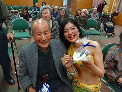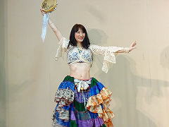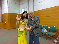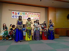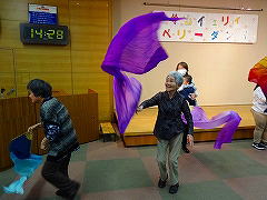 | 素敵な衣装を身にまとった女性が、音楽に合わせて華麗に力強く舞うベリーダンス。 サムイェリィさんがふれあいデイサービスに訪問してくれました。 初めて見るご利用者さんがほとんどで、びっくりドキドキの連続でした。 |