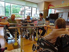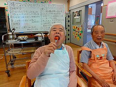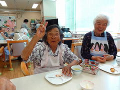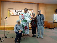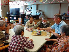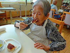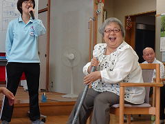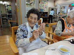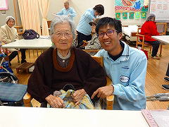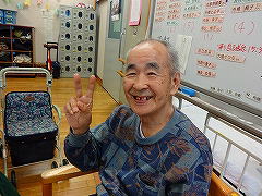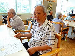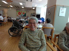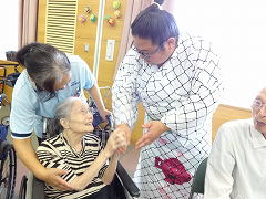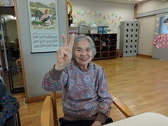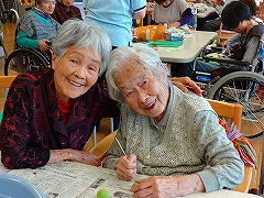| 林さんは物知りでキャリアも長く、とても頼りになります。 資格いろいろ持っているように、知識も深く正確です。 峯さんはとにかく明るく、「脳体操ドリル」を担当し「日本語を 教えてください」と何でも積極的に取り組む頑張り屋さんです。 また、浅川さんは優しくふんわりとした雰囲気でご利用者さんと 接するため、ゆっくり落ち着いておはなしをきいてくれます。 高齢者に愛されるキャラクターを持つ三人です。 |
