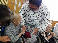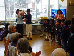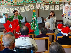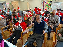 | 今年もポップママスさんがクリスマスソングを歌いに来てくれました。 ♪赤鼻のトナカイ♪ ♪ジングルベル♪ 気分はノリノリで楽しかった~。 お~いサンタさん、デイサービスにも来ておくれ! ![]() |