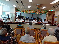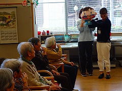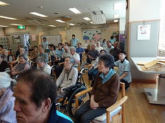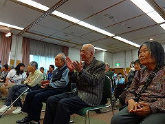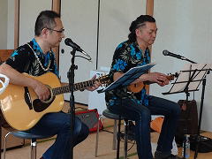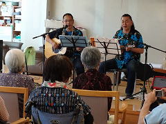 | ウクレレを演奏していただきました。 ハワイアンを聞きウクレレ演奏に浸った後は、「上を向いて歩こう」を ウクレレと共に合唱しました。楽しいひと時をありがとうございます。 |