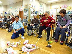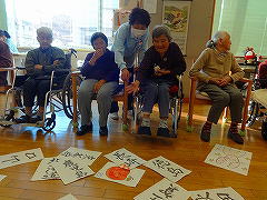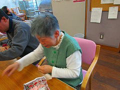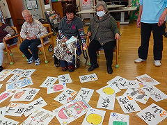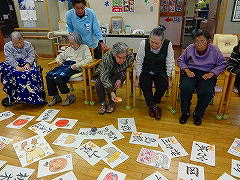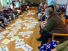 | 都道府県の書いてあるカードを狙って、お手玉を投げるゲームです。 簡単そうで意外とむずかしいんですよ~。わいわいガヤガヤ、ドキドキわくわく・・・ 大盛り上がりで楽しい時間を過ごしました。 ![]() |