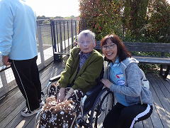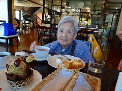 いつものデイサービスの車で、北名古屋市にある食のアウトレットモール「桃の館」に 行ってきました。野菜に果物、お菓子、、、いろいろなものがある中でのお買い物は ワクワク楽しいですね。お買い物の後は、喫茶で、ケーキセットを堪能。 お腹も心も満腹にして帰路につきました。次の外出企画は11月です。 ![]() ![]() |