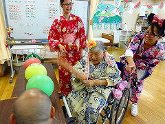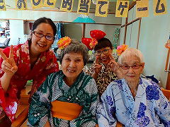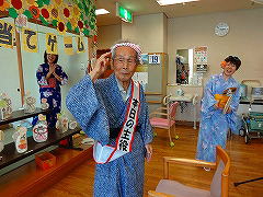 的当て、金魚すくい、すいか割り、盆踊り、パターボーリングにかき氷など楽しいことがいっぱい 今年は皆さんに浴衣やはっぴを着ていただき、1週間ずっと開催しました。素敵な笑顔の 写真がたくさんありますので、11月にロビーにて写真を展示しますので、お楽しみに~♪ ![]() ![]() |