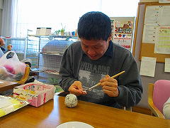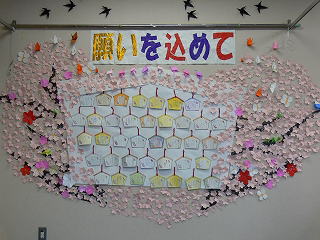4月は年度初め。心を新たに、みんなで色々な思いを書きました。 ウナギをたらふく食べたい、ロト6(宝くじ)にあたりますように、20歳代のイケメン職員があらわれように、などなど 一つひとつ読んでいると、とても楽しいです。 裏は干支のニワトリが描かれていてきれいに色が塗られています。もちろん桜の花びらも利用者さんの手作りです。 |