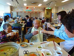 毎年恒例の新年会。おいしい物を食べるだけはなく、職員やお利用者さんの出し物を見て笑って歌って・・・・ あっという間に時間が過ぎていきます。 飲み物に用意したコーラは初めて飲むご利用者さん続出で、職員もびっくり!!楽しいひと時でした。 ![]() ![]() |