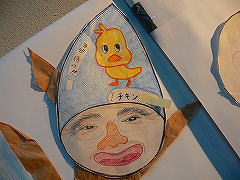 新聞紙を丸めて張り子を作っているみたい・・・完成作品は次回をお楽しみに。 ![]() |