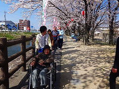 | 五条川のお花見に出かけました。お天気にも恵まれ、優しい日の光にピンクの咲き誇る桜はとてもきれいでした。 お花見後は、アピタ大口店に行き、パンケーキやみたらし、アイスクリームなどをほおばりました! ![]() |