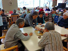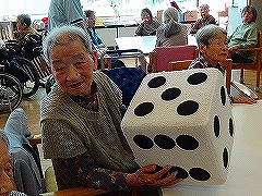さいころを2回ふって 出た目の数を足したり割ったりしながら出た数字をつかって 遊ぶ脳トレーニングです。チーム戦で、優勝チームには特製トロフィーが贈られました。