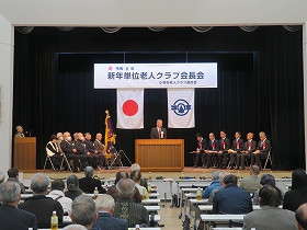 服部市老連会長の新年の挨拶から始まり、山下小牧市長をはじめ