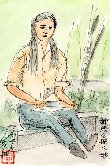 久しぶりに休暇を取って、私の地元に隣接する春日井市の市民緑地公園に妻と出かけて新緑を楽しみました。この絵はタイトルの通り女子高生と思われる数人が写生している風景の一こまです。真剣な表情で遠くを見てすぐ画用紙に写し込んでいくのを繰り返していましたが、こちらの絵の輪郭だけ出来上がったところでどこかに姿を消してしまいました。 |