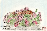 私の庭に咲いた「なばな」です。最近園芸に登場する花々は種類が多いうえ、非常に美しかったり特徴のあるものが増えています。この花は野草であまり目立たないですが薄い紫が可憐な印象を与え、この時期にはいたるところでお目にかかりますのでこのようなタイトルにしました。私が花を描く場合繊細さとか色合いにこだわらずに感じたままを表しているつもりです。しかし最近は花に対する情熱が薄らいできたようで、少し個性の表現に努めるなどして花に取り組まねばと思っています。 |