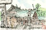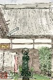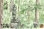 美濃加茂市伊深町にあるこのお寺は自宅から車で約1時間にあり、落ち着いた境内と荘厳な建物は参拝者の気持ちを平安にしてくれます。妻はここにお参りすると御利益があると信じており、最近は2〜3ヶ月毎に2人で参拝しています。葉書絵も本殿はすでに描き以前このページでもご紹介しましたが、今回は境内にある仏像を中心にして描いて見ました。 |