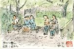 「浜町公園にて・昼食の娘たち」:(2000.7.18)