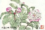 この冬も自宅生け垣のサザンカが満開になりました。サザンカは一般に真冬の花ですが我が家では11月中旬に開花し始め、正月にはほとんど満開の状態です。私の葉書絵には何度か登場していますが、実際の花は今年は例年より大き目ですので今回は多少アクセントをつけたつもりです。サザンカは咲いているうちはよいのですが、特に八重の花ははしぼんだ後茶色になって落花するのが難点です。21世紀に入っても同じように開花落花を繰り返すことでしょう。 |