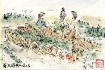 自宅付近の畑で見かけました。中央の茶色いものは白菜です。藁でくくられたものもあり、間もなく切り取られることでしょう。向こう側には畑を耕している農婦、さらに前方には肥料を撒いている人たちがいます。寒さが少し緩みあちこちでこのような光景を目にします。春はまだかもう直ぐか。どちらにしても農家の人たちには忙しい時期がやって来ます。 |