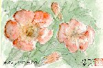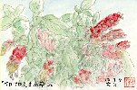 一昨年から自宅庭に咲いているユリです。最初は1輪、昨年は2輪でした。いずれもこのページで紹介しています。この調子ならば花の数が次第に増えて7・8輪は期待できそうです。最近至るところで同じ花をよく見かけますが、どちらかといえば野性に近くかなり多くの花をつけているほか、コンクリートの割れ目に自生しているのもあります。このユリも年々茎が長くなり1m以上になっているため、庭より低い道路からこの絵を描くのに股梯子を使ったほどです。 |