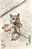 両国橋の床下で見かけた上品な?犬です。暑いので路面に体を伸ばして腹を冷やしている姿を描きました。私が前にしゃがんで描いていても同じ姿勢でじっとこちらを見ています。ところが少したって急にそわそわしだした。実は私の背後に裸のホームレス男が食べ残しの食物をもって来たのです。モデルは私などそっちのけで全部食べ終わった。そしてまた別の男が缶詰の食べの残しを持って来たのでそれを食べ、その後に水まで飲む始末です。結局10分以上待たされましたが、日陰とはいうものの暑さに参って出来上がった作品はこんなものです。 |