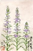 この花に似た植物はあちこちの山野で見かけますが、サワギキョウという名前のこの植物を知ったのはテレビを通じてです。縁に突起をつけた葉の形状はキキョウと同じですが、花はキキョウと全く異なり上唇と下唇に分かれています。茎もキキョウに比べてかなり背高で、種子の入った袋はゴマに似ており、中に非常に細かい種子が詰まっています。いずれ種子を取って自宅で育ててみようと思っています。 |