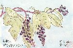 この植物は野草ですが、私の庭では毎年自生してそれなりに目を楽しませてくれます。ブドウに似たちょっと小ぶりの実をつけ、それが熟してくると次第に枝が垂れてきます。この絵を描いた時期は相当熟した感じで、葉も黄色に変化し始めていました。熟した実は食べられないばかりか紫色の汁が衣類に付着するので、妻はこの植物を余り歓迎しません。 |