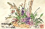 名古屋での彩水会展は9月3日から8日まで愛知芸術文化センターで開催されました。この花は私がたまに覗く名古屋市内のスナックから頂いたお祝いで、今回の展覧会唯一のお祝いです。最終日に会場に出向いてスケッチし、自宅に帰って着色しました。半の名前などはまったく知りませんが、受付のテーブルにこじんまりと置かれて葉書絵展の会場にはうまくマッチしていると思いました。また「きち」さんに行かなくっちゃ。 |