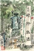 私がよくお参りする迫不動の境内に立てられている老年の弘法大師の等身大の石像で、昭和58年1月に敬虔な信者が建立されたもののようです。境内の奥の院近くにはまだ若いときの弘法大使像も建立されておりますが、二つの像はそれぞれ修行前と修行を積んだ後の顔の表情が異なっており、こちらは威厳と慈愛に満ちた表情で像の前に立つだけで仏のお恵みが授けられそうな気分になります。 |