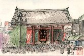 東京葛飾区に住んでいる長男夫婦を妻とともに丁度1年ぶりで訪ね、ついでに浅草寺にお参りしました。秋の週末とあって観光客などでごった返しています。2歳半になった長男の娘の手を引いて人ごみの中を通り抜けることがままならず、中央の仲見世を避けて店の裏側を行き来した次第です。また彩水会東京展がこの日まで近くの展示館で開催されたので、皆で鑑賞しました。 |