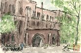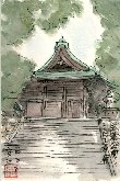 北海道に出張したのは数年ぶりで、北海道大学へは初めて訪れました。札幌市のど真ん中に広大な緑地が開け、すべてがキャンパスを形成しています。この建物は理学部の研究室をかねているようですが、玄関入口の形などから相当古い建物と思われます。北海道大学はクラーク博士や新渡戸稲造で有名で、お二人の胸像もこのキャンパスに置かれており、私はクラーク博士をスケッチさせてもらいました。 |