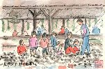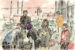 今年の冬は暖冬との長期予報が途中で変更されるほど関東以北は寒い日が続きました。また今年は全国的にインフルエンザが流行し、それが下火になったと思ったらもう1月末頃から花粉症が蔓延するなど、不景気に追い討ちをかけるように肉体的な苦痛を強いられている人たちも多い年になったように思います。私自身もこの冬は珍しく風邪には縁が無い代わりに2年ほど前に取り付かれた花粉症に見回られ始めました。それでも葉書絵の方はモチーフがばらばらながらそこそこやっております。今回は正月過ぎに見かけた冬の情景から、少しずつ感じる春のおとずれをを描いて見ました。