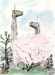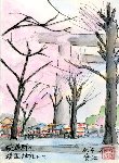 春を象徴する花は何と言っても桜でその淡い色は私たちの目をひきつけ、この時期だけに限ってあたかも自分の存在を誇示しているように感じさせます。私は今年も桜に誘われてあちこちの名所を訪れ、かなりの桜を描くことができました。特に今回は桜に隣接する建物などをモチーフとし、桜を脇役に仕立てて描くことに専念したつもりです。なお最後の2枚は桜とは異なった話題性のあるモチーフを取り上げてみました。