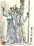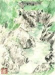 | 立秋から1週間以上を経ましたが、まだまだ真夏日が続いています。今年は梅雨の半ばころから水銀柱が上がりっぱなしで、例年にない長い夏になりそうです。私の葉書絵制作はこの暑さが響いて7・8月はペースダウンしていますので、今回は6月以降のものを集中的にご紹介しました。作品自体は暑さを表していないので、テーマには暑さを避ける意味を持たせたつもりです。7月下旬には私がメンバーになっている「彩水会展」名古屋展を愛知芸術文化センターで開催し、約320名の方に見ていただきました。私も会期5日間のうちお世話するため3日会場に出向きましたが、いずれも大変な暑さで印象に残る「彩水会展」になりました。 |