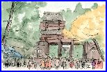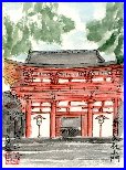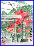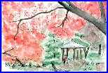 2004年は災害など自然の異常現象が際立って多かったほか、社会においても特異な犯罪が多発するなど、過去に例を見ない不安な1年でした。それに比べれば私自身は平穏な1年でしたが、最近は自分の年齢を意識して生活するようになったことは事実です。 しかし幸いに葉書絵の制作意欲は衰えないので、今年の秋は紅葉を中心に描くよう努力しました。特に奈良の名所旧跡・秋の姫路城など静寂を感じ取れる場所を求めて移動し、鮮やかな紅葉に接する機会は少なかったものの、2004年を締めくくるにふさわしい作品ができたと喜んでいます
