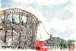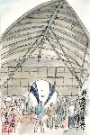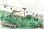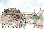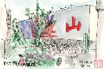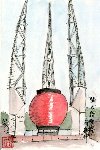 またこの絶好の機会を自分自身で形として残すものとして、私は万博開幕前から自分が最も力を入れている葉書絵の制作を思い立ち、7月以降集中的に葉書絵作品を残すことに努めました。ただ会場で立ち止まって描くことが難しいので、一部の作品はデジカメを活用して自宅で描いたものもあります。