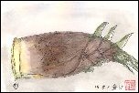 水彩画のモチーフにするために買った竹の子を早速描いてみました。竹の子は彩水会の仲間の多くが描いていますが、私は初めての制作です。買うときに根の部分が多く残ったものを選ばなかったため、ややアクセントの少ない作品になってしましました。