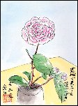 近郊の荒地に植えられている椿を上に描いた花と同時期に採取したものです。このような淡い花以外に斑点があったり真っ赤なものなどが1本の木に咲き乱れているのは不思議なくらいです。花の形状やおしべの大きさなど、同じ椿でも種々あることを初めて知りました。作品としてはこの花は彩色が単調のため鮮明に表すことが難しく、結局この程度の表現になってしまいました。