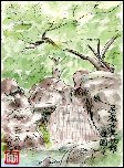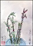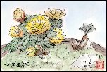 よくお参りするお不動さんの参道付近で採って描きました。描く前に皮をはいだ茎を口に入れた時、子供のころ古里で食べた思い出がよみがえって来ました。当時はお菓子や果物などが少ない時代でイタドリはちょっとしたおやつ代わりでしたが、久しぶりに口にした感触はお世辞にもおいしい味とは程遠かったです。イタドリを描いたのは10年以上の葉書絵制作では初めてですが、もっと観察して描けば面白い作品になったかも。