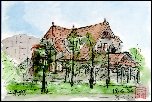 仕事で渋谷に出かけ、ついでに描いてきました。ここは渋谷交差点から徒歩10数分にあり、以前描いたのを思い出して足を運びました。偶然休館日で人の出入りは見られず、落葉した垣根越しにこぶしの白い花が咲いて静かなたたずまいを見せていました。