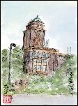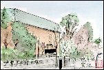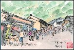 ボランティアグループ「イキイキライフの会」の日帰り旅行で清水方面に行きました。ここは家康を祀った久能山東照宮の近くに昨年秋作られた公園で、家康の生涯について紹介した「徳川家康ミュージアム」のほか、江戸時代の街並みの紹介をしていますので、家康の生涯や当時の風情に少しばかり触れることができました。この絵は公園の入口付近で描いたもので、天候の良い土曜日で多くの人々が来ていました。