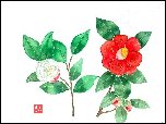水彩画教室のモチーフで椿を使うことになり、よく出かけるお不動さんの裏山で薮椿を採って来ました。椿の葉書絵は以前にも描いているので、今回は水彩画教室で身に着けた「垂らしこみ」を応用してみましたが結局以前のものと差はなかったようです。しかし花の紅色と葉の濃緑のコンビネーションはお気に入りで、満開・中間・つぼみと三段階の状態がうまく仕上がったと思っています。