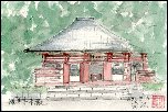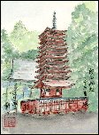 久しぶりに奈良を訪ねたくなり、友人を誘って新緑の明日香を散策しました。この神社へは10数年前の秋に訪れて多くの観光客とともに紅葉を楽しんだ記憶がありますが、今回は訪れている参拝客が少ないので落ち着いた雰囲気に浸ることが出来、新緑の中にくっきりと映えた朱色の、芸術作品ともいえる十三重の塔に改めて感興を覚えました。この姿を現地で短時間に描きあげるのは難しいので、写真から転写しました。