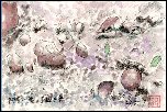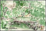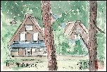 白川郷へは一度も行ったことが無かったですが、まだ2ヶ月弱前に月東海北陸自動車道の飛騨トンネルが完成したことも動機になって友人と出かけました。この日は道中の雨が上がって気分爽快な一日で、合掌造り民家園を中心に白川郷一帯を楽しむことが出来ました。この絵は民家園内の一画を描いたものですが、どこへいっても合掌造りが散在し、日本にある「世界遺産」の素晴らしさを実感しました。この絵を描いた近くでは合掌造りの屋根の葺き替え工事を見ることが出来ました。