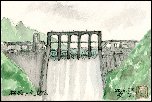 岐阜県八百津町のこのダムは私には大変なじみのあるところです。この日は高校時代の同窓会に向かう途中で立ち寄りましたが、前日からの大雨でダムから大量の水が放流されていました。この絵からは想像できませんが落水による音響が付近の山々にこだましていて、普段は静止した情景としか写らないダムの存在をあらためてを実感しました。