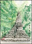 明日香散策のあと、車を西北に駆って二上山に向かいました。二上山に登るべく当麻寺周辺に設置された長い石段をてっぺんまで登りましたが、山はまだ遠方にしか見えず登山を断念しました。この山へも10数年前に登っていますが本来の登山ルートを利用したので2時間程度で登頂できた記憶があります。地元の喫茶店に立ち寄って、この石段から二上山へはいけないことを知りました。結局葉書絵のモチーフとしては役立ちました。