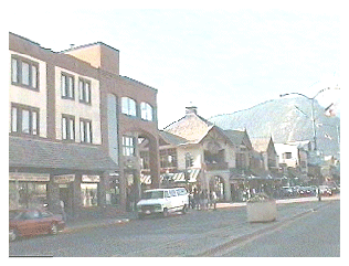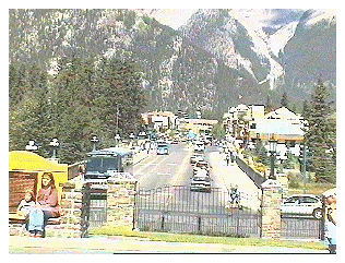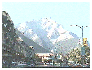 正面の橋はボウ川にかかるバンフ大通りの一部