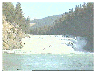 | 有名な映画「帰らざる川」の舞台になった場所。落差は ないが前方の山を背景にした奇麗な滝である |