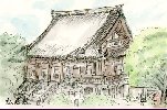 東京ドームのある地下鉄後楽園駅から西北約 1km の所にある、徳川家康の生母・於大(おだい)の方の菩提寺です。開山は1415年で江戸時代には僧侶の学問所となっていたそうです。ここには2代将軍秀忠の長女・千姫など徳川家ゆかりの女性達の墓が多いとのことです。私が描いている間は暑さのせいか人はまばらでした。そう言えば今から15年程前の2月、小雪が舞う中を妻とここにお参りして御朱印を貰ったとき、お坊さんがよく御出で頂いたと丁重にお礼を言いながらお菓子を下さったことを思い出しました。 |