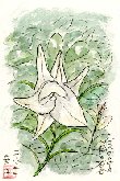 自宅のさざんかの生け垣の間から道路に向けて白百合が1本だけ花を見せてくれました。この時期はあちこちで咲いていることからどこからか種子が飛んできたものと思われますが、さざんかの濃い緑と調和してなかなか赴きがあります。最近は百合の種類が増えていろいろな名前がついていますが、やはり白百合は栽培する百合の原点ではないかと感じながらこの絵を描きました。 |